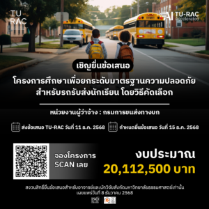 TU-RAC ขอเชิญยื่นข้อเสนอโครงการศึกษาเพื่อยกระดับมาตรฐานความปลอดภัยสำหรับรถรับส่ง