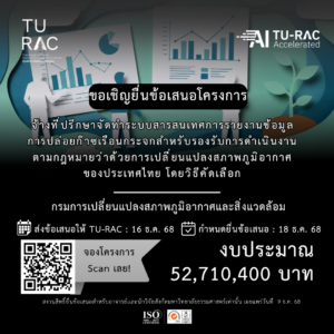 TU-RAC ขอเชิญยื่นข้อเสนอโครงการ: จ้างที่ปรึกษาจัดทำระบบสารสนเทศการรายงานข้อมูลการปล่อยก๊าซเรือนกระจกสำหรับรองรับการดำเนินงานตามกฎหมายว่าด้วยการเปลี่ยนแปลงสภาพภูมิอากาศของประเทศไทย โดยวิธีคัดเลือก ☁️🌍