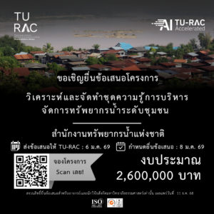 TU-RAC ขอเชิญยื่นข้อเสนอโครงการวิเคราะห์และจัดทำชุดความรู้การบริหารจัดการทรัพยากรน้ำระดับชุมชน 💧🏘️