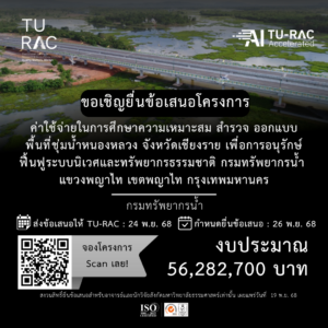 ✨ TU-RAC ขอเชิญยื่นข้อเสนอโครงการค่าใช้จ่ายในการศึกษาความเหมาะสม สำรวจ ออกแบบพื้นที่ชุ่มน้ำหนองหลวง จังหวัดเชียงราย เพื่อการอนุรักษ์ ฟื้นฟูระบบนิเวศและทรัพยากรธรรมชาติ กรมทรัพยากรน้ำ แขวงพญาไท เขตพญาไท กรุงเทพมหานคร