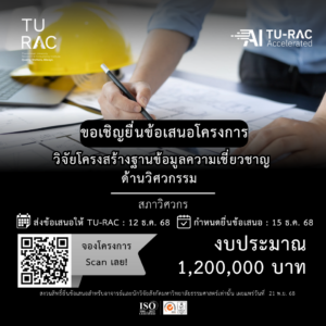 ✨ TU-RAC ขอเชิญยื่นข้อเสนอโครงการวิจัยโครงสร้างฐานข้อมูลความเชี่ยวชาญด้านวิศวกรรม