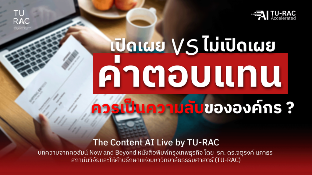 From the article “Should Compensation Figures Be an Organizational Secret?” by Assoc. Prof. Dr.Chaturong Napathorn, Thammasat University Research and Consultancy Institute (TU-RAC). The article appears in the Now and Beyond by TU-RAC column every Thursday in Bangkok Biz News newspaper and on the Bangkok Biz News online platform.