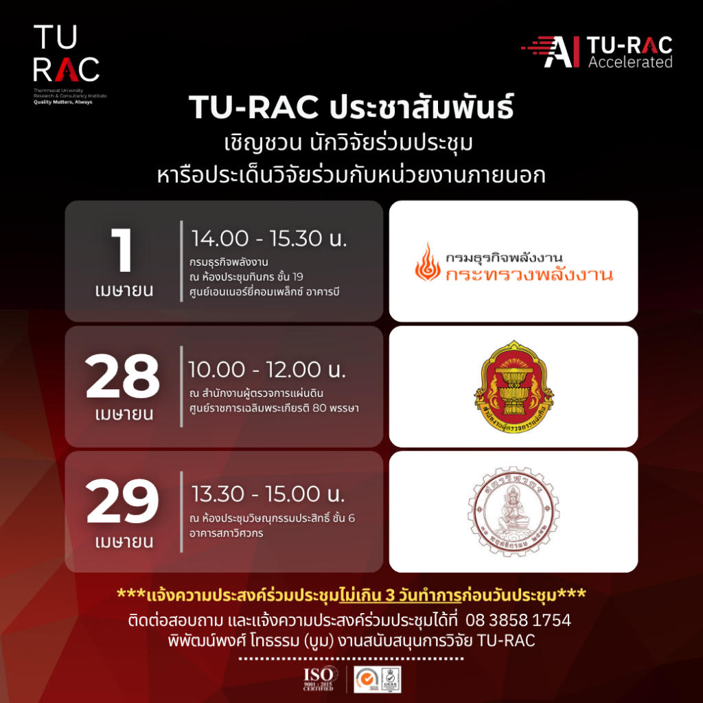 📢 TU-RAC แจ้งวันหยุดเทศกาลสงกรานต์ 2569 💦 Read More »