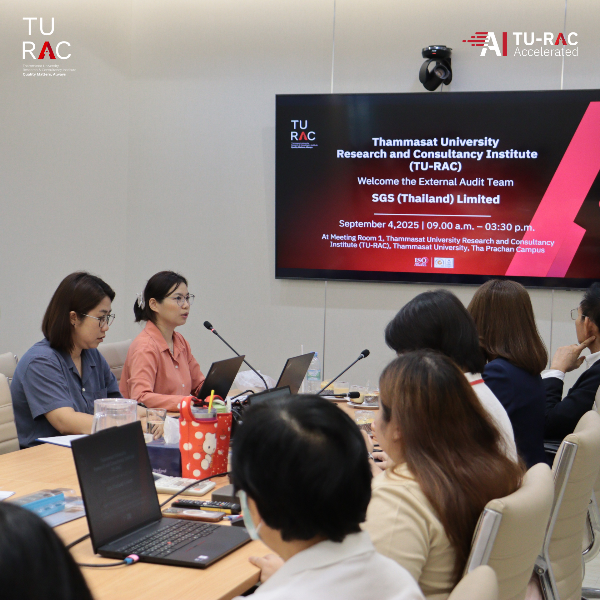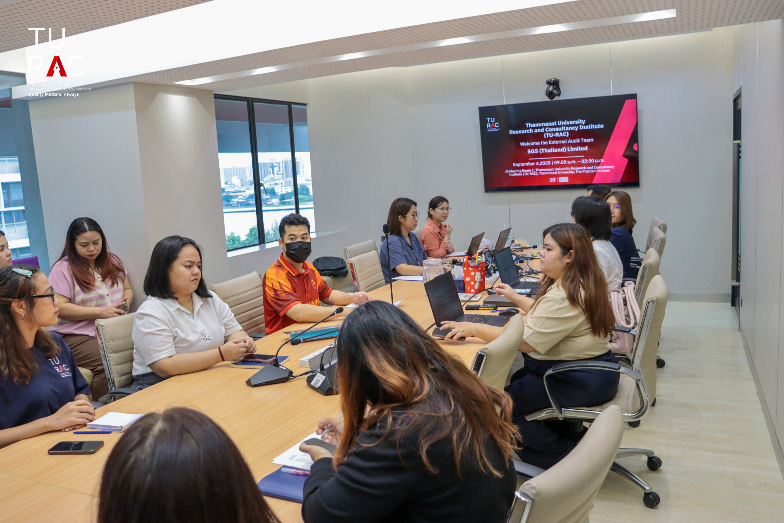 September 4, 2025 | Thammasat University Research and Consultancy Institute (TU-RAC) has successfully completed the External Audit for the ISO 9001:2015 Quality Management System, conducted by auditors from SGS Thailand Limited.