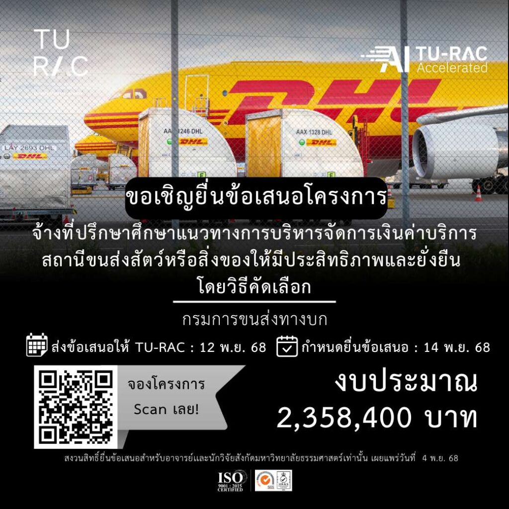 ✨ TU-RAC ขอเชิญยื่นข้อเสนอโครงการจ้างที่ปรึกษาศึกษาแนวทางการบริหารจัดการเงินค่าบริการสถานีขนส่งสัตว์หรือสิ่งของให้มีประสิทธิภาพและยั่งยืน โดยวิธีคัดเลือก