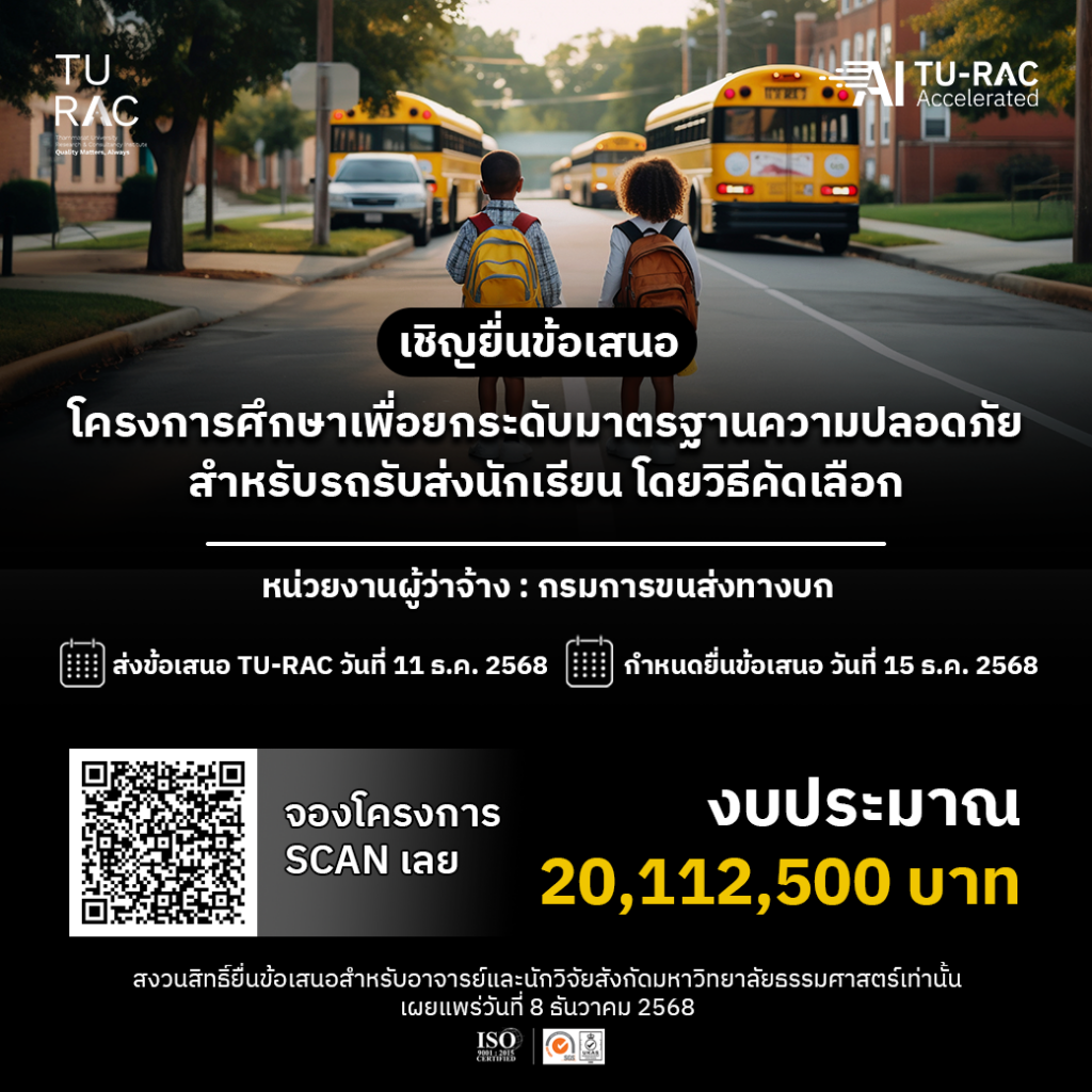 TU-RAC ขอเชิญยื่นข้อเสนอโครงการศึกษาเพื่อยกระดับมาตรฐาน