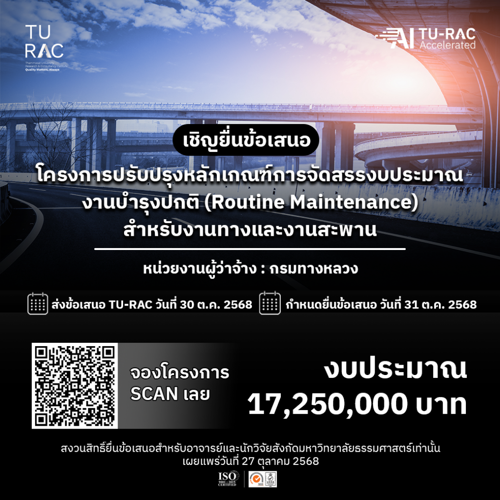📅 กำหนดวันส่งข้อเสนอให้ TU-RAC : 30 ตุลาคม 2568